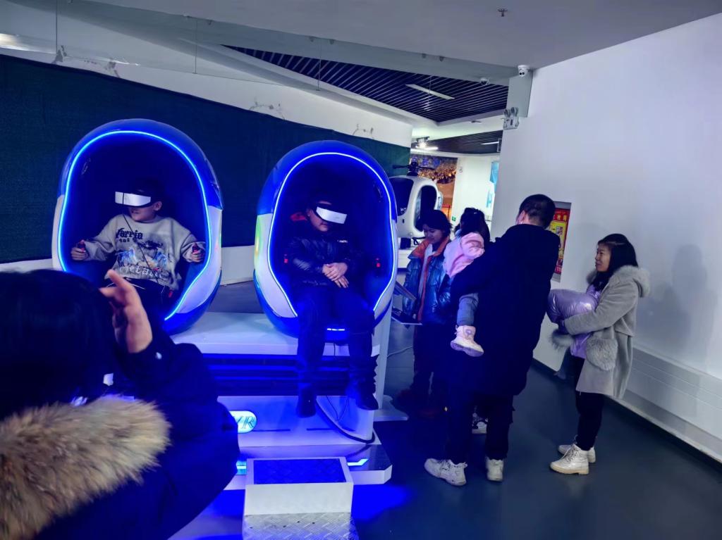 活動(dòng)中,工作人員首先向小朋友們介紹了VR雙蛋座椅的原理和功能。小朋友們坐在座椅上,佩戴VR頭顯,VR游戲和影片,帶小朋友們進(jìn)入了全新的虛擬世界,比如一起來(lái)探索宇宙、漫游古代文明等。