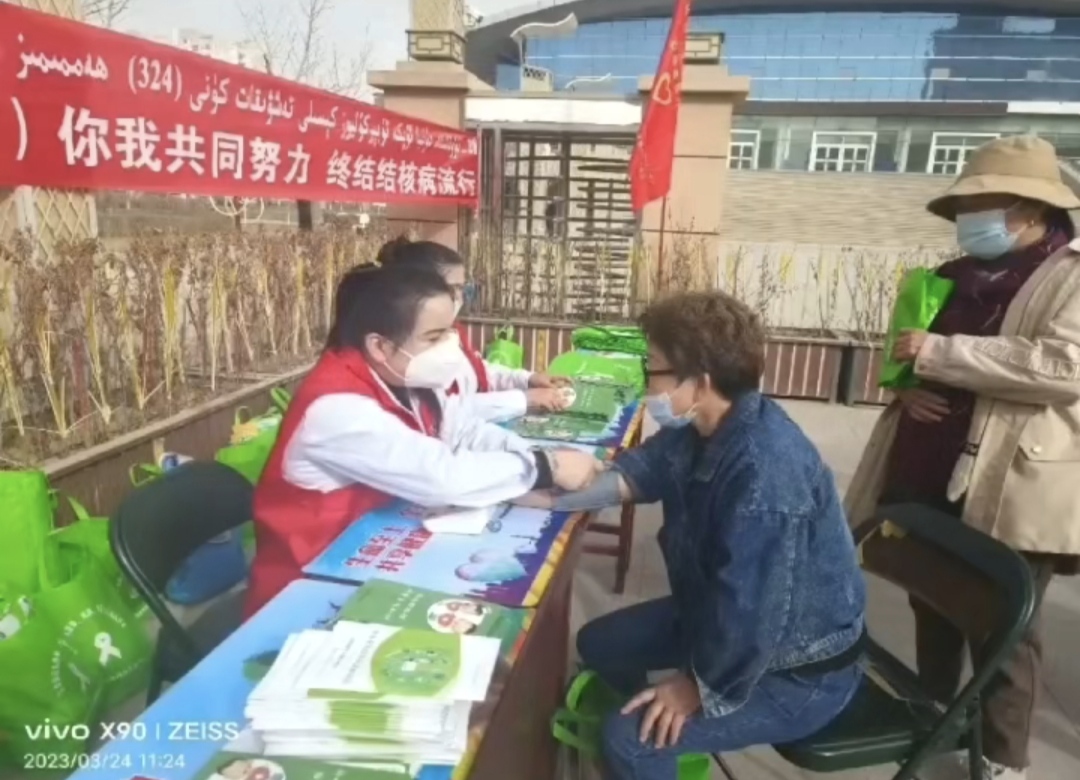 3月24日至26日,利用周末人流量較為集中的時機,拜城縣科協聯合縣中醫醫院,在拜城縣體育廣場開展結核病防治知識宣傳、咨詢和義診活動。為了強化宣傳效果,設立了宣傳咨詢臺、義診臺,準備了大量的結核病防治宣傳折頁。縣中醫院的醫務志愿者們為廣大群眾提供免費的專業咨詢及疾病診斷,向群眾深入宣傳結核病的防治知識及國家采取的對肺結核病人免費治療政策,免費為市民測量血氧、血糖、血壓,檢查核酸抗原,進行肺部聽診。