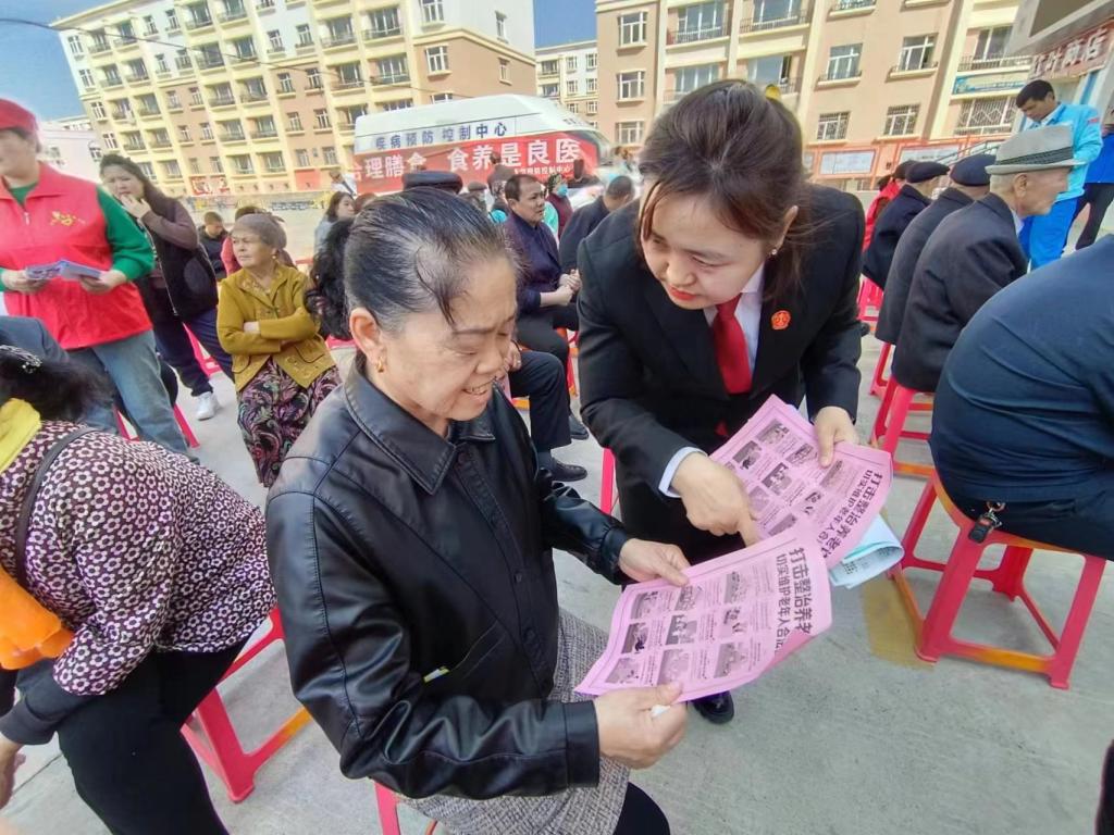 【普法宣傳進社區】縣法院通過發放防范養老詐騙宣傳頁等方式,結合案例,用通俗易懂的語言進行講解,提醒老年人不要向陌生人隨意透露個人信息、銀行卡密碼等,不要點擊陌生鏈接,遇到可疑情況,應及時與親屬、好友等溝通或撥打報警電話,謹防上當受騙。并引導群眾下載“國家反詐中心”APP,并現場講授軟件功能及使用方法,幫助老年人增強防范養老詐騙的能力,助力打擊整治養老詐騙活動。