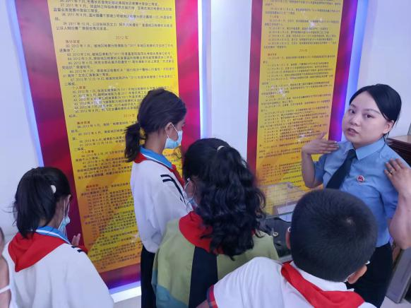 近日,拜城縣人民檢察院聯合教科局、科協、民政局、婦聯、團委、關工委等單位,組織全縣各校師生代表、律師代表等開展“攜手落實‘兩法’共護祖國未來”檢察開放日活動?;顒又校h人民檢察院“訴心”團隊的“訴心姐姐”帶領參會代表和學生們參觀了公開聽證室、12309檢察服務中心、公益訴訟快檢室、檢察榮譽室等場所,為大家講解檢察工作職能,解讀《未成年人保護相關法律法規》,引導大家用法律的武器維護自身合法權益。
