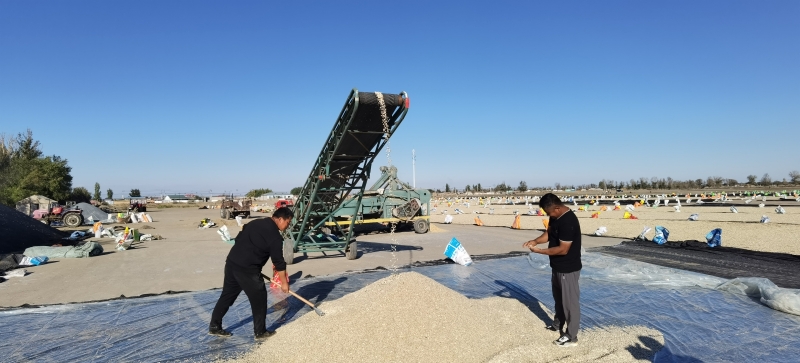 9月18日,在裕民縣吉也克鎮(zhèn)恰勒根巴依庫勒村的田地里,聯(lián)合脫籽機來回穿梭,拾瓜、打碎、過篩、出籽一氣呵成,吐出的瓜籽被源源不斷地裝上車,拉走晾曬,呈現(xiàn)一幅忙碌而喜人的景象。目前,裕民縣各鄉(xiāng)鎮(zhèn)調(diào)足機械設(shè)備,全力支持采收工作,確保籽用西葫蘆豐產(chǎn)豐收,預(yù)計整個采收工作將于10月初結(jié)束。