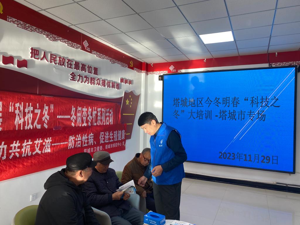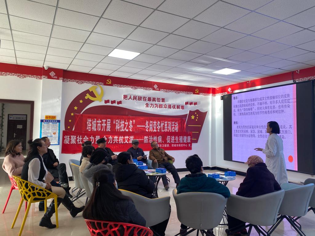 活動中,塔城市疾控中心的醫(yī)療志愿者為居民群眾帶來了關于艾滋病的講座,從認識艾滋病、艾滋病的危害、艾滋的傳播等方面開展普及教育活動,讓轄區(qū)居民深刻地了解艾滋病的危害,了解有效防治艾滋病的具體措施及預防艾滋病工作的重要性,讓大家用正確的心態(tài)去對待艾滋病以及艾滋病病人,引導居民養(yǎng)成良好的生活習慣和健康的生活方式。