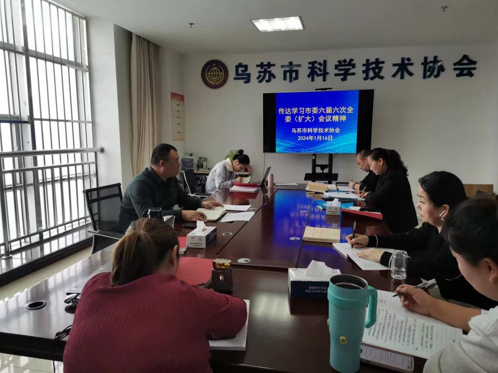 1月16日,烏蘇市科協(xié)召開會議,傳達學(xué)習(xí)中共烏蘇市委六屆六次全委(擴大)會議精神,安排部署烏蘇市科協(xié)2024年重點工作,烏蘇市科協(xié)黨組書記劉彥超主持會議。