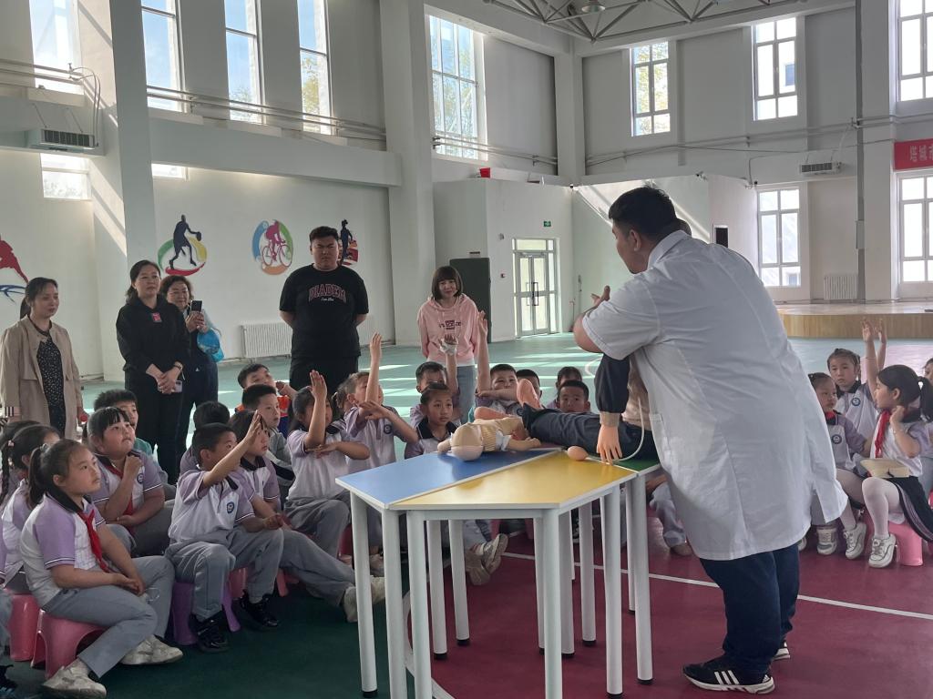 5月12日是第15個全國防災減災日,為進一步提高青少年防災減災意識與應急自救互助能力,5月11日下午,塔城市科技館邀請塔城市人民醫院急診科科里克·熱瑪扎醫生,為塔城市三小205班的學生們,開展了醫療急救演練活動。