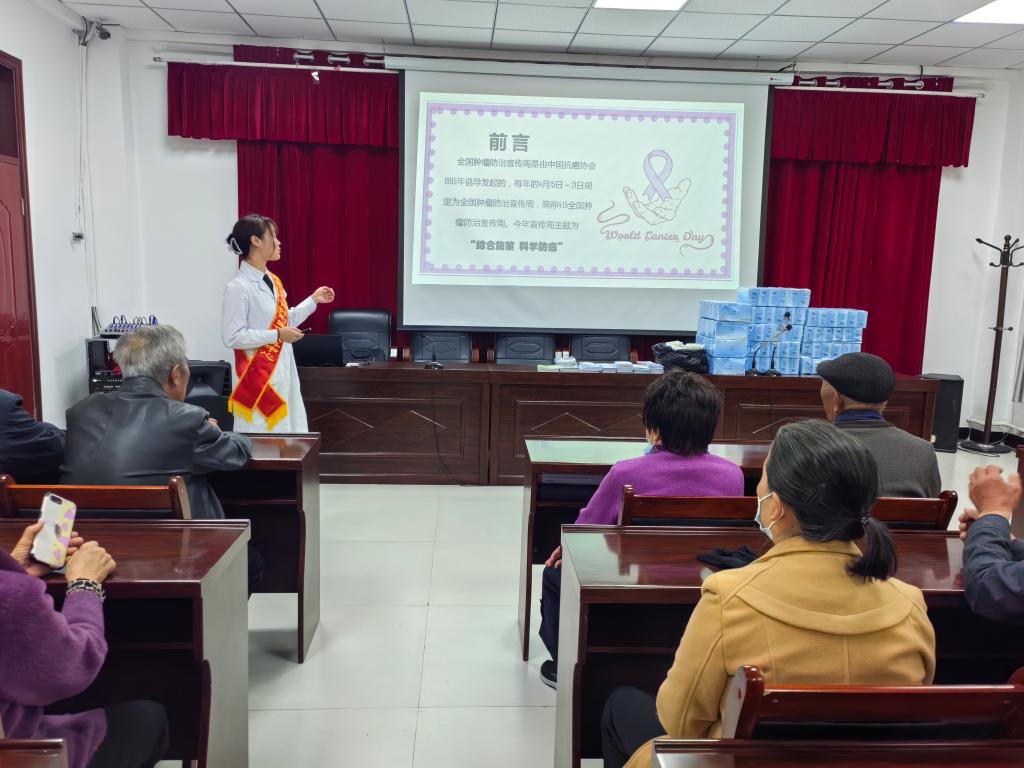 活動中,科技工作者向老年居民講述如何有效預防癌癥,如何早期發現癌癥、規范治療癌癥,通過現場播放健康教育宣傳片,讓居民認識癌癥可防可控,提高居民對癌癥防控的認識,倡導居民改變不健康生活方式,重視健康體檢,早期發現、早期治療、規范治療腫瘤,最終達到減少癌癥發生,有效延長患者生存時間,提高患者生存質量,降低家庭疾病負擔的目標,切實降低癌癥帶來的社會危害。科普講座結束后,醫務工作者為參與活動的群眾提供了日常養生保健方法的指導,并進行了血壓測量等義診活動。