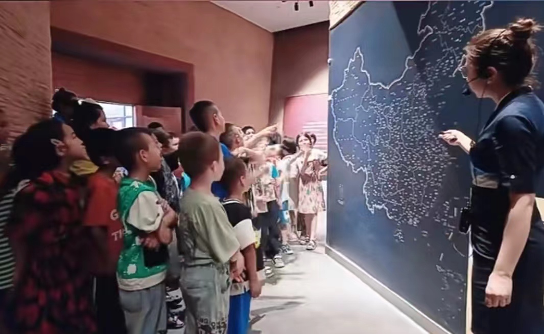 當天,科普志愿者帶領青少年走進絲路文化展廳,一一參觀藏品,并向他們詳細講解陳列文物背后的歷史故事。青少年揭開一個個畫像的神秘面紗,聆聽著畫像背后的故事,解開文物背后的文化密碼,體會畫像蘊含的廣度與深度。在黨史文化展廳,青少年時而認真聆聽解說,時而駐足觀看視頻,時而細聲討論,跟隨生動形象的圖片走進歷史現場,了解中國歷史文化的久遠和內涵,感受大美中國的歷史文化魅力。