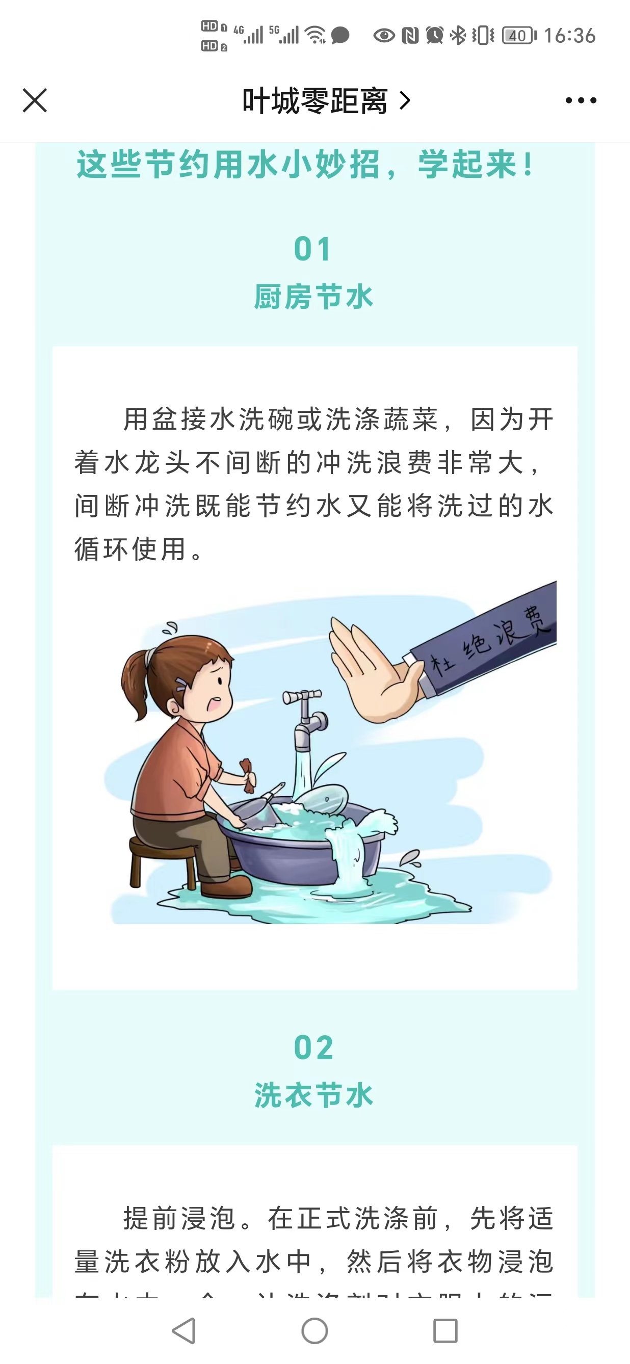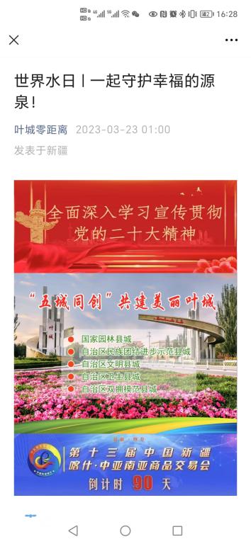 同時(shí),由水利局提供素材,發(fā)揮融媒體中心線(xiàn)上科普宣傳優(yōu)勢(shì),制作“世界水日·一起守護(hù)幸福的源泉”為主題的科普內(nèi)容在葉城零距離公眾號(hào)開(kāi)展線(xiàn)上宣傳,通過(guò)圖文并茂,穿插節(jié)約用水小妙招,更加直觀向公眾宣傳廚房節(jié)水、洗衣節(jié)水、洗澡節(jié)水、其它節(jié)水知識(shí),有效提升群眾節(jié)水意識(shí)。