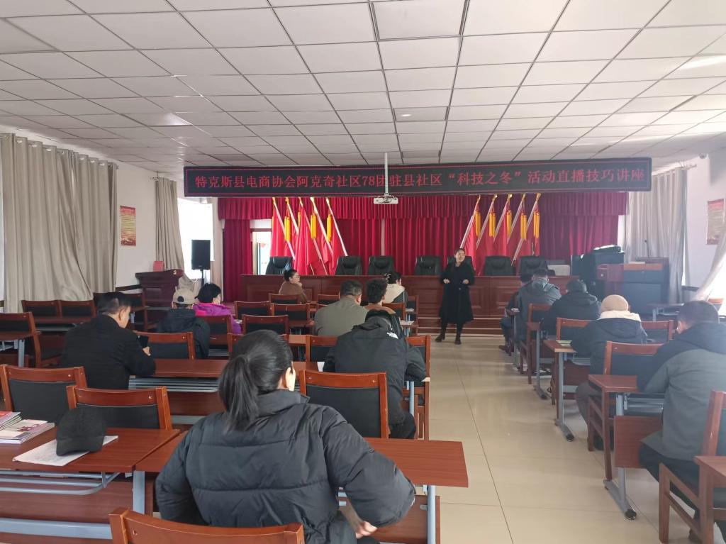 特克斯縣科技局、科協圍繞拓寬特色農副產品銷售渠道、宣傳推介旅游,大力發動電商協會開展培訓、宣傳活動。科技之冬活動中,協調電商協會黨支部書記、科技特派員、資深講師郭玉梅深入村、居開展“直播技巧”等專題培訓5場次,受眾210多人,發放有關書籍200余冊。