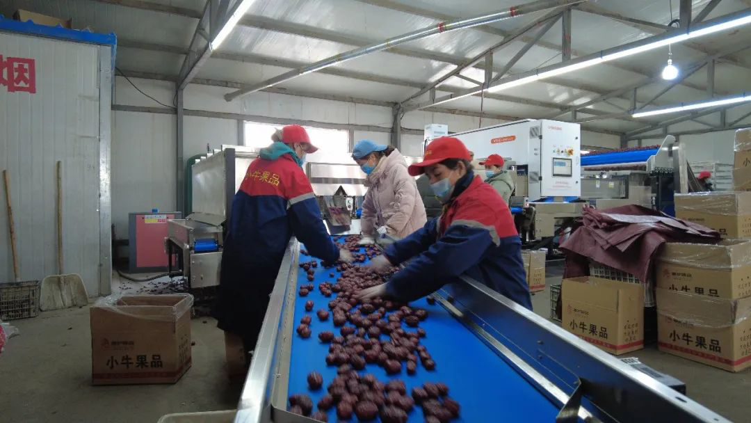 眼下,新和縣科普示范基地--小牛果品農民專業(yè)合作社的紅棗進入供不應求的熱銷期。1月1日,合作社紅棗加工車間里,只見生產線上一粒粒色澤透亮的紅棗被分選裝袋,工人們忙著稱重、裝箱、搬運……各類機械轟隆隆地高效運轉著,呈現(xiàn)出一派繁忙景象。在通透敞亮的標準化車間里,清洗機、振動篩、一體化烘干機等先進加工設施一應俱全,散發(fā)著農業(yè)現(xiàn)代化生產氣息。