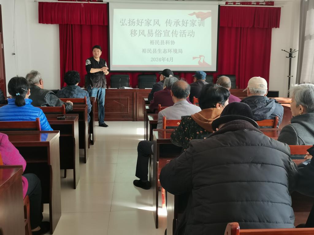為充分引導各族群眾注重家庭、家風和家教,弘揚良好的家風家訓,構建科普大融合格局,有效推進全民科學素質提升,4月3日,裕民縣科協聯合縣生態環境局,組織科普志愿者深入裕民縣新時代老年康樂中心開展移風易俗科普宣傳活動。