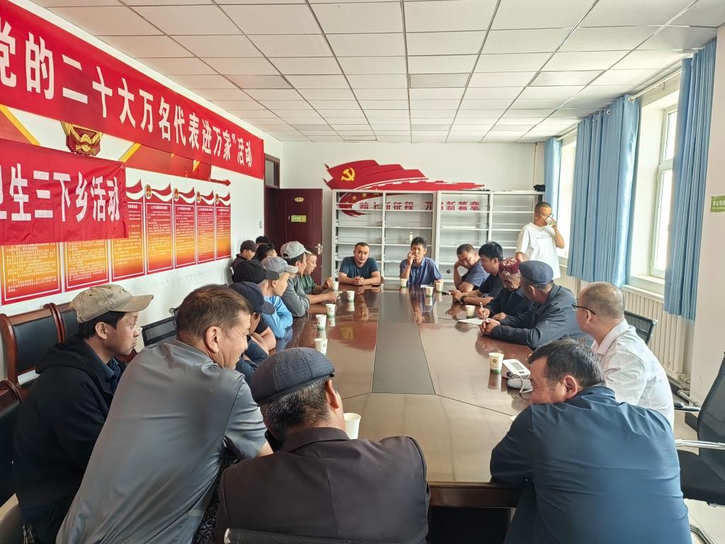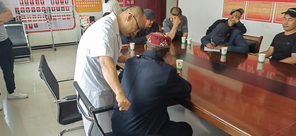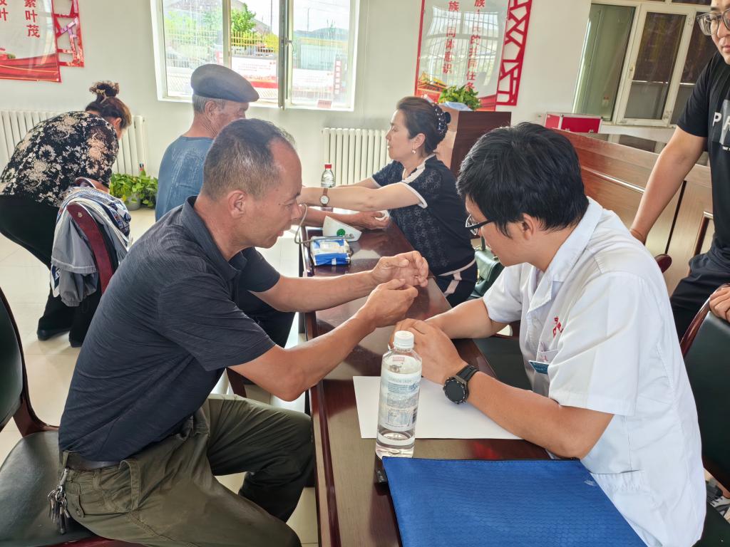 義診活動現場,前來咨詢的各族群眾絡繹不絕,專家組耐心細致地為他們進行問診、檢查、診斷等工作,并仔細詢問他們的身體狀況,用通俗易懂的語言解答他們提出的有關慢性病、疑難復雜疾病等問題。同時,醫務人員熱情地為他們提供測量血壓,醫療團隊認真負責的工作態度,讓各族群眾連連稱贊。村民斯干旦·巴克說:“我最近常常腰痛,想去醫院看看,今天我聽說市醫院的專家來了,我就趕快過來看,真方便。”