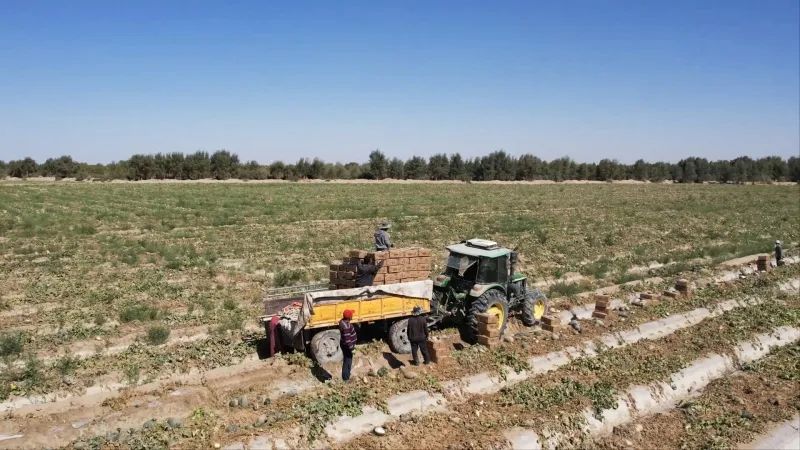 10月14日,走進民豐縣安迪爾鄉(xiāng),種植戶在田間地頭采摘甜瓜、包裝、搬運,一派忙碌的景象。