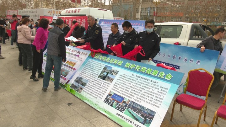 活動現場,工作人員向群眾講解水法知識,解答涉水問題,接受群眾有關用水、節水等方面的咨詢。通過懸掛橫幅、設立宣傳展板,發放宣傳資料、節水倡議書、宣傳袋等形式宣傳《新疆維吾爾自治區實施<中華人民共和國水土保持法>辦法》《中華人民共和國河道管理條例》《地下水管理條例》等法律法規,向廣大群眾宣傳節水的重要意義,倡導群眾科學用水,減少水資源的浪費,讓節水成為居民的內心自覺。