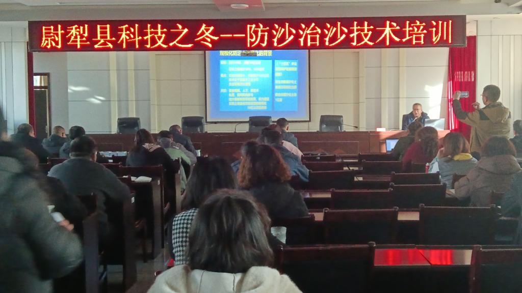11月30日,由縣科協聯合縣林草局舉辦的尉犁縣2023-2024年“科技之冬”啟動儀式暨防沙治沙科技培訓在縣林草局三樓會議室舉行,邀請新疆林科院造林治沙研究所高級工程師陳啟民、研究員吉小敏,中國科學院新疆生地所研究員孫永強,巴州林業和草原局高級工程師鄧成軍主持了全縣共計150余名參加培訓活動。自此尉犁縣正式拉開今冬明春“科技之冬”科技培訓的序幕。