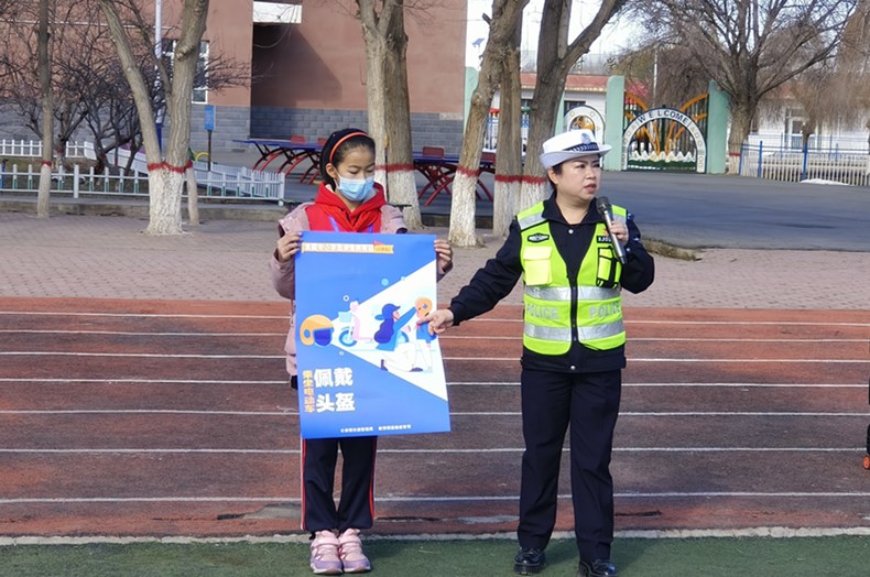 聯合吉也克鎮寄宿制中心校,邀請裕民縣交警大隊民警開展形式多樣的交通安全宣傳教育活動。民警通過發放宣傳單、圖解、我問你答的形式,多樣化進行道路交通安全宣傳教育講座,同時以“文明守法平安回家”為主題,讓大家在歡聲笑語中學習交通安全常識。并結合發生在學生身邊的典型交通事故案例,以案釋法,教育引導同學們在上下學途中不在馬路.上追逐打鬧、不隨意橫穿馬路、遠離汽車盲區、騎乘車佩戴安全頭盔等,做到危險會避險,安全文明出行。