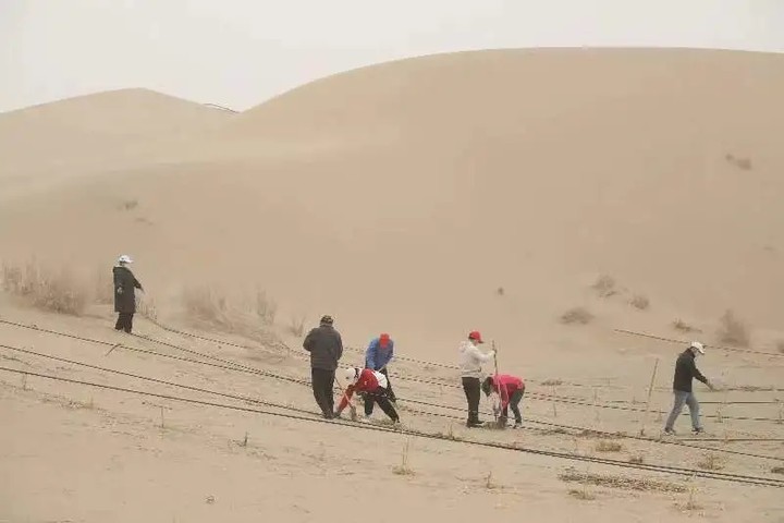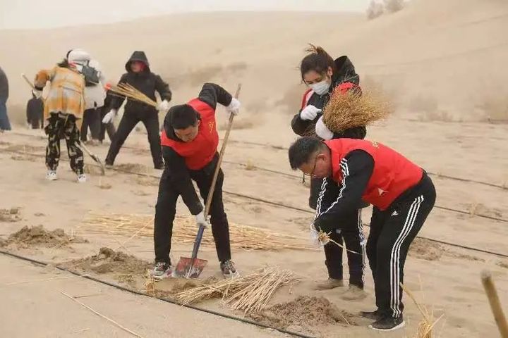4月4日,在且末縣防風治沙工作中,廣大黨員干部職工、科技志愿者正齊心協(xié)力,互相配合,將一株株樹苗植入剛挖好的樹坑中。扶苗、培土、踩實、澆水,每道工序大家都做得十分認真,到處都是忙碌的身影。新栽植的小梭梭樹苗迎風挺立,成為沙漠里一株株守衛(wèi)綠色的風景線。