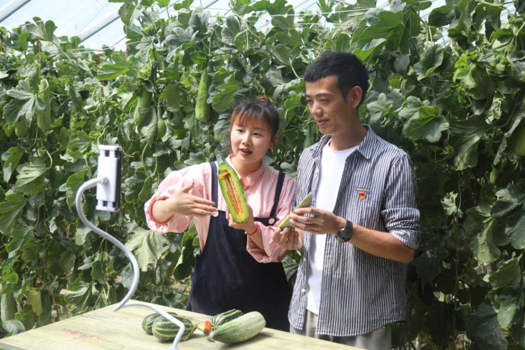 羊角蜜瓜成熟采摘時,每座大棚產量在7.5噸左右,依孜布拉家的羊角蜜瓜日采摘量達25噸以上,帶動40名村民季節性務工增收。為拓寬羊角蜜瓜銷售渠道,工作隊與村“兩委”組織合作社社員進行抖音直播帶貨,不斷提高顏布克村羊角蜜瓜知名度,短短一天時間,銷售額近7萬余元。