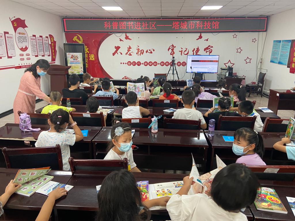 為培養青少年養成良好的閱讀習慣,豐富他們的科學知識儲備,7月27日,塔城市科技館走進光明社區開展“書香進社區 閱讀助成長”科普讀書會活動。塔城市科技館為此次讀書會活動準備了涉及科學探秘、趣味實驗、少兒百科全書、生態環保等幾大類別的書籍。