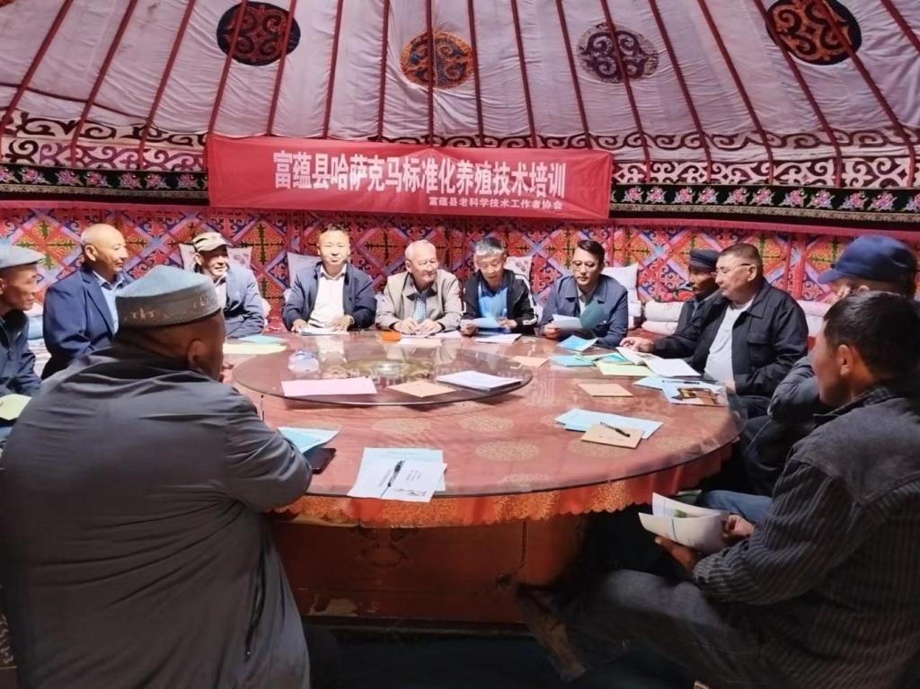 為深入學(xué)習(xí)貫徹黨的二十大精神,貫徹落實中共中央辦公廳、國務(wù)院辦公廳《關(guān)于加快推進鄉(xiāng)村人才振興的意見》,圍繞突出抓好“九大產(chǎn)業(yè)”中優(yōu)質(zhì)畜產(chǎn)品產(chǎn)業(yè)重點任務(wù),推進富蘊縣馬產(chǎn)業(yè)健康發(fā)展,提高農(nóng)牧民科技文化素質(zhì)。7月10日至7月12日,富蘊縣科協(xié)、老科協(xié)前往克孜勒希力克鄉(xiāng)牧辦、金溝夏牧場開展2024年良種馬繁育技術(shù)產(chǎn)業(yè)培訓(xùn)班,把科學(xué)知識送到農(nóng)牧民的轉(zhuǎn)場家門口??俗卫障A肃l(xiāng)養(yǎng)馬合作社成員及養(yǎng)殖戶共26人參加了培訓(xùn)。