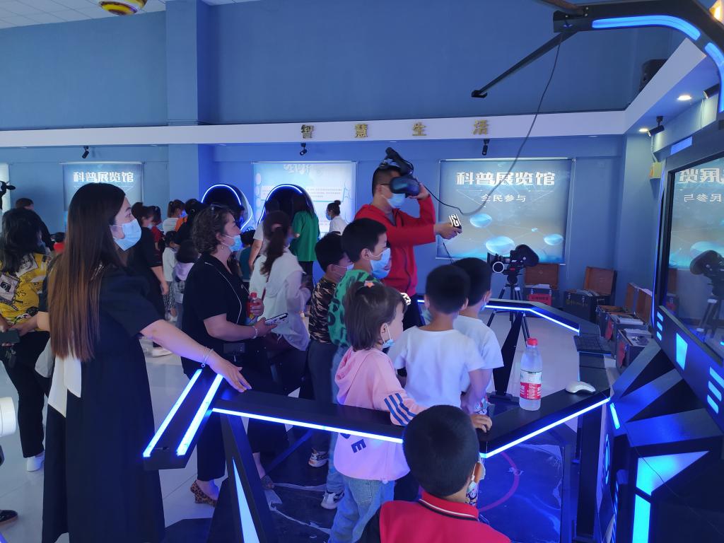 在陽霞鎮(zhèn)哈爾墩村科普館,孩子們有說有笑,個(gè)個(gè)討論著科普館里的展品。科普講解員帶領(lǐng)孩子和媽媽們體驗(yàn)科普神奇,對相關(guān)科普器材使用方法進(jìn)行了詳細(xì)講解,并讓孩子和媽媽們親自使用各類科學(xué)儀器和設(shè)備,體驗(yàn)科學(xué)奧秘。當(dāng)看到環(huán)保DIY垃圾分類、VR科普教育組合、VR安全應(yīng)急組合等科普展品時(shí),孩子和媽媽們都表現(xiàn)出濃厚的興趣。科普講解員還手把手教他們共同體驗(yàn)VR科普教育組合器材,讓他們感受科普帶來的樂趣。用“小手拉大手”的方式搭建起智慧橋梁,向媽媽們傳播科學(xué)知識,拉近親子情感。