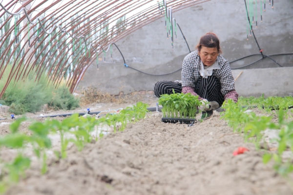 “大家注意栽苗的間距不要小于一個腳長的距離,不要栽得太深,破壞了滴灌帶管......”7月26日,在博湖縣塔溫覺肯鄉(xiāng)哈爾恩根村的大棚里,農(nóng)業(yè)技術(shù)推廣人員趙小平一邊說一邊拿著辣椒苗、小鋤頭,給來栽苗的農(nóng)牧民群眾現(xiàn)場示范栽種反季節(jié)辣椒苗需要注意的事項。