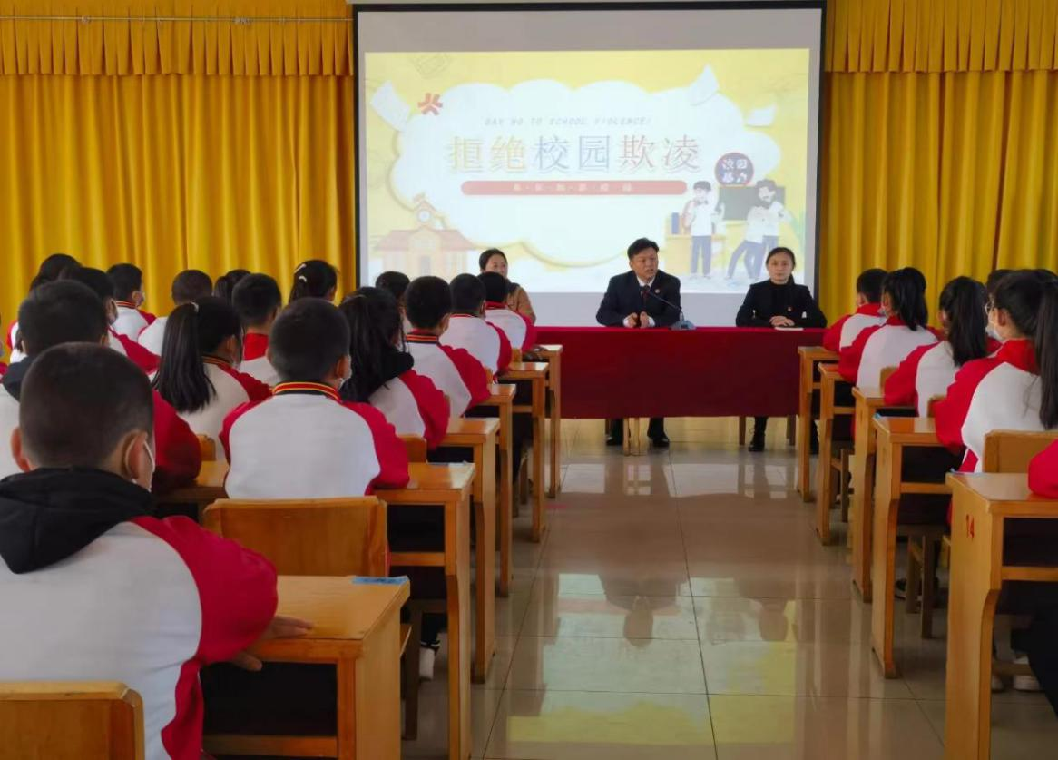 講座現(xiàn)場,孟檢察官分別從“認(rèn)識校園欺凌”“校園欺凌的表現(xiàn)形式及特點(diǎn)”“容易參與校園欺凌的類型”“校園欺凌的危害及影響”和“如何走出校園欺凌的陰影”五個方面,以問答提問的形式,運(yùn)用通俗易懂的語言、簡單實(shí)用的法律知識和生動的案例,向同學(xué)們展示了校園欺凌給受害者帶來的傷害及嚴(yán)重后果,讓學(xué)生們明白哪些行為屬于校園欺凌。同時,鼓勵學(xué)生當(dāng)自身安全受到威脅時,不再隱瞞,要敢于向校園欺凌說“不”。最后,利用“班班通”全校師生共同觀看了情景劇《如果交換人生》。