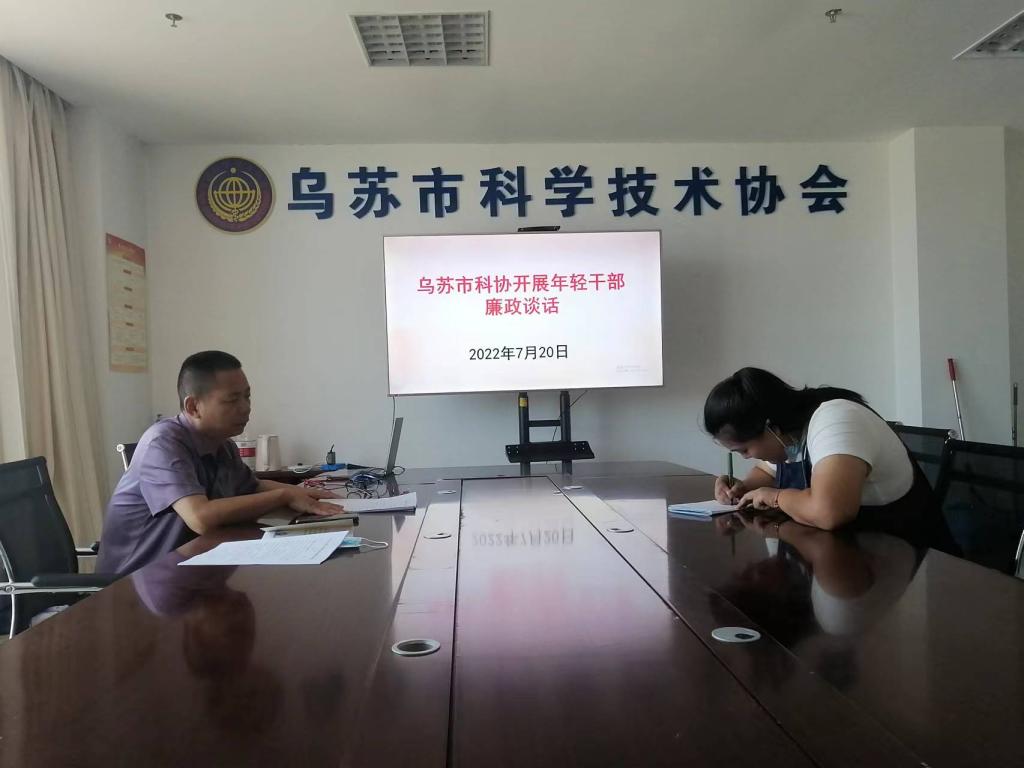 開展廉政談話。會上,烏蘇市科協黨組副書記、主席孫厚典同志代表黨組對全體參會人員進行集體廉政談話,并重點強調年輕干部要扣好廉潔從政從業第一粒扣子,筑牢思想防線。