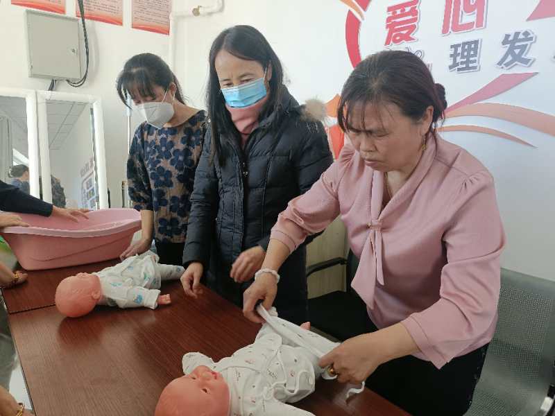 培訓班由技工學校育嬰方面的老師為婦女講解護理理論與實操課程,包括嬰幼兒護理、孕產婦護理、新生兒教育等育嬰知識?,F場活動中,老師還利用投影儀、嬰兒模型等直觀方式,深入淺出地幫助學員掌握相關知識,現場演示了新生兒的環抱姿勢、洗澡、臍帶護理、全身撫觸等技巧。