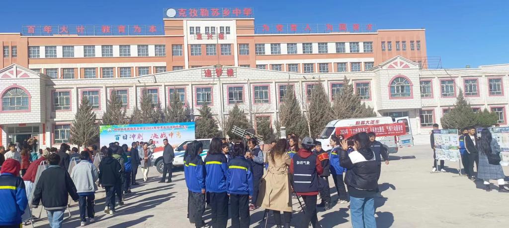3月15日,克孜勒蘇鄉中學的操場上熱鬧非凡。氣象科普人員引領師生們參觀氣象科普知識宣傳展板,深入淺出解釋常見氣象災害自救、互救方法和防御技巧,耐心細致介紹人影火箭發射車、科普大篷車、自動氣象站、手持氣象站、百葉箱等氣象設備工作原理,將復雜的氣象科學轉化為實用的生活知識。