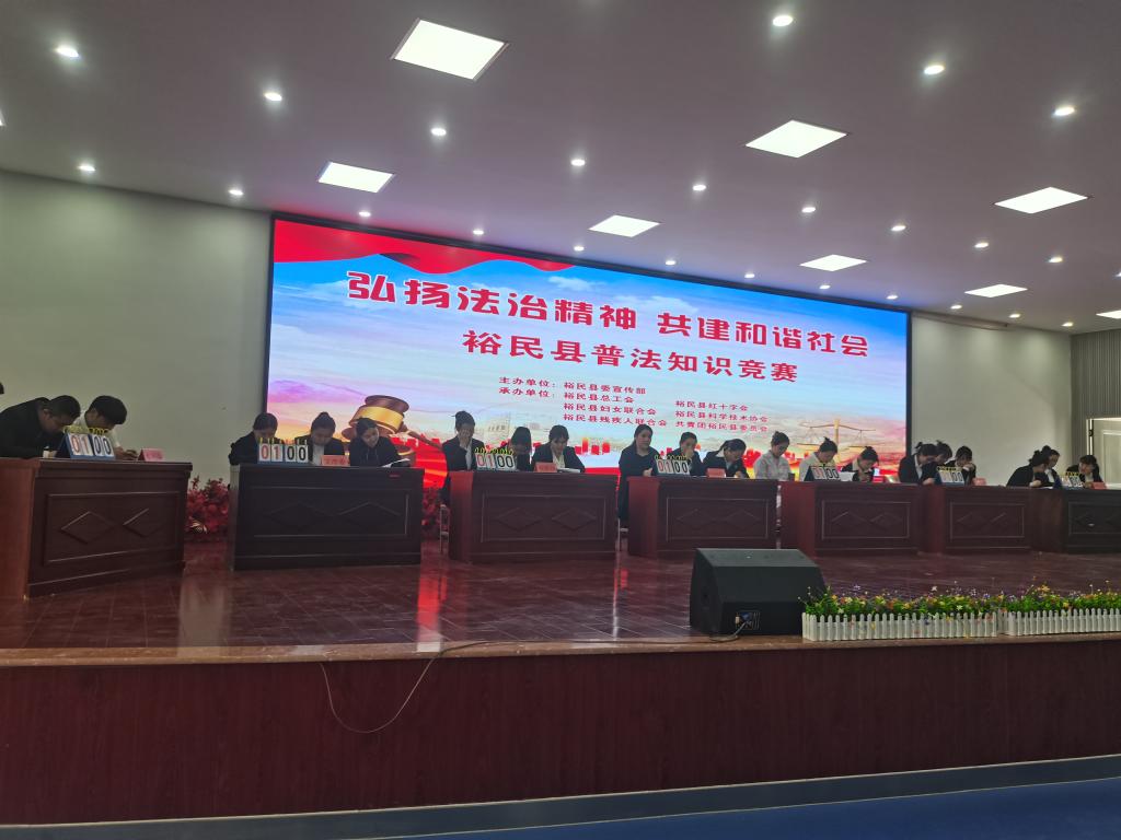 本次競賽特邀承辦單位主要領導擔任此次大賽的評委,為大家答疑解惑,保證比賽的公平、公正。競賽內容涵蓋黨的二十大精神、習近平法治思想及《中華人民共和國科學技術普及法》《殘疾人保障法》《婦女保障法》《紅十字會法》《工會法》《共青團章程》等內容,競賽形式分為個人必答、小組必答、風險搶答三個環節?;顒悠陂g,還增設觀眾互動答題環節,現場觀眾通過掃描二維碼,即可進入答題界面,參與法律法規知識問答,活動形式新穎,喜聞樂見,極大地調動了干部職工答題積極性,通過以賽促學的方式在全縣干部職工中掀起了學習法治知識的熱潮,進一步增強了干部職工的社會主義法治意識,提高了干部職工的法治素養和法治能力。