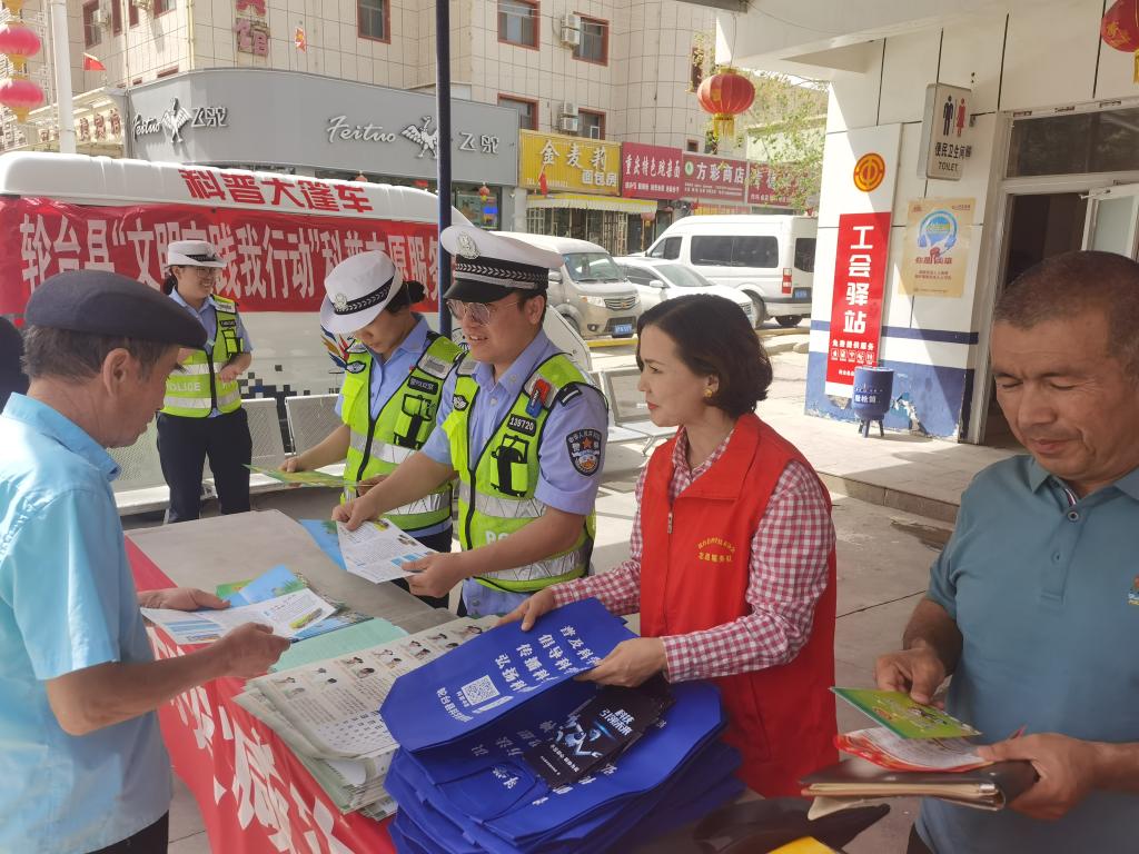 5月10日,輪臺縣科協在新星路步行街東門處參加縣消防救援大隊、縣公安局、縣商工局、新星路社區等多單位多部門共同舉辦的“5·12防災減災日”集中宣傳教育活動。