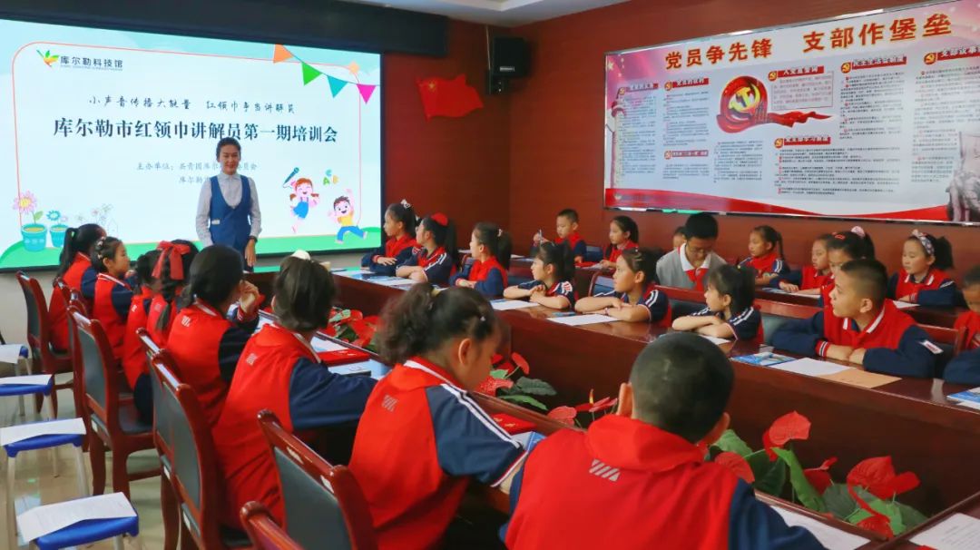揭牌儀式結束后,為庫爾勒市首批49名紅領巾講解員發放聘任書,全體人員共同參觀庫爾勒市科技館,隨后開展第一期紅領巾講解員培訓會。