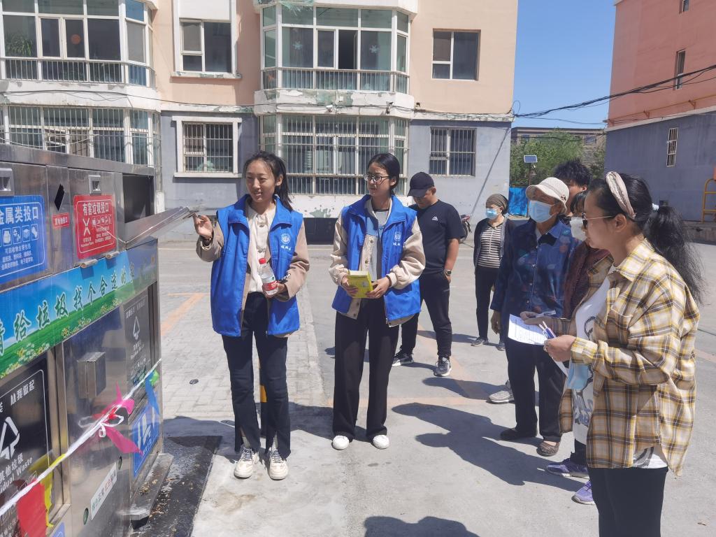 在設(shè)有分類(lèi)垃圾箱的居民小區(qū),志愿者們通過(guò)發(fā)放垃圾分類(lèi)宣傳資料及講解垃圾分類(lèi)的好處等方式,指導(dǎo)社區(qū)居民認(rèn)識(shí)垃圾分類(lèi)的好處,掌握分類(lèi)方法。對(duì)垃圾區(qū)別分類(lèi),引導(dǎo)群眾垃圾分類(lèi)裝好后要投入相應(yīng)分類(lèi)垃圾桶內(nèi),養(yǎng)成垃圾分類(lèi)的好習(xí)慣。
