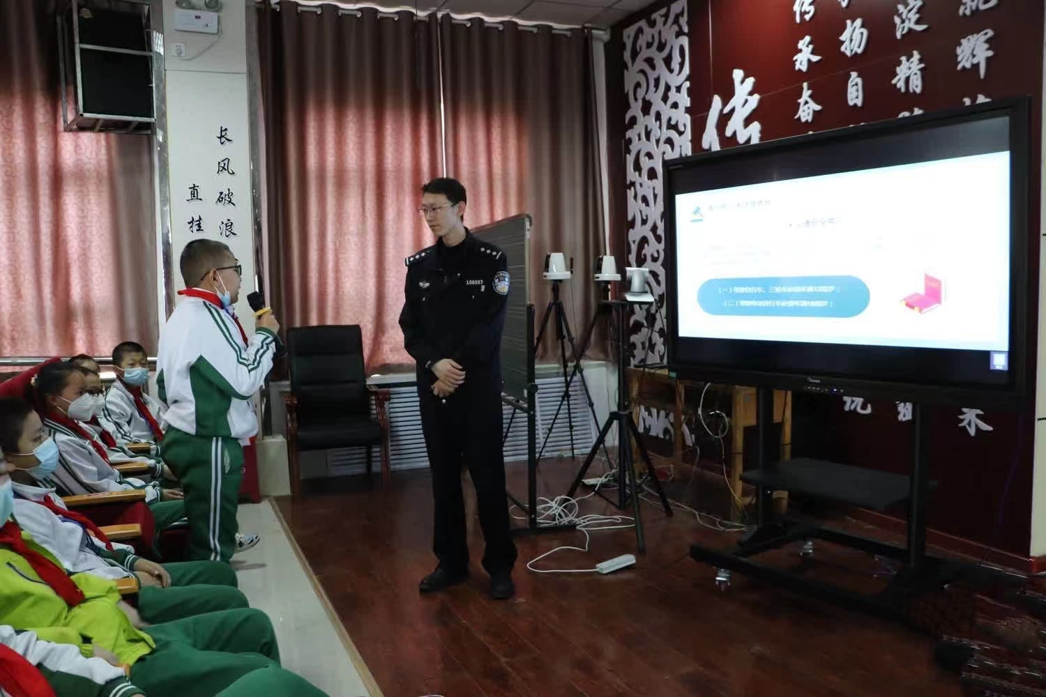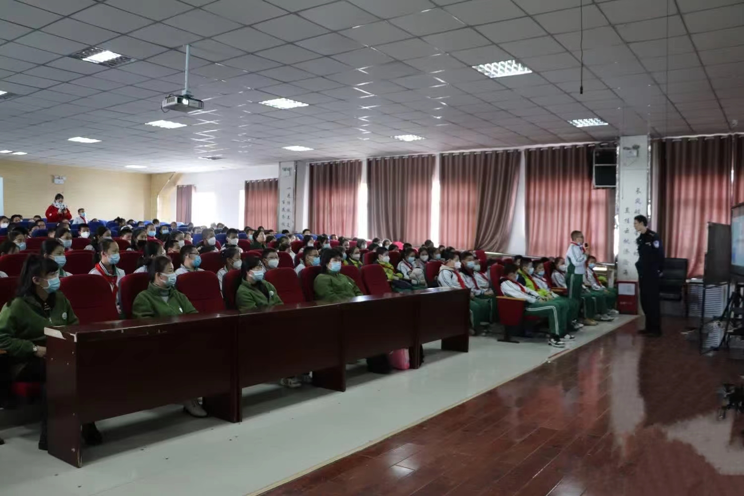 活動中,塔城市科協與第五小學德育處特別邀請了杜別克派出所宏圖社區普法宣傳志愿者閆鋼警官,為六年級師生開展了一場“法治教育”專題講座。閆警官從為什么要守法、關于法律責任年齡的常識及青少年三大法律責任三個方面,以典型多發的案例故事為載體,通俗易懂地講解了青少年容易觸犯的法律,引導學生遵紀守法,增強學生明辨是非和自我保護的能力,自覺抵制各種不良誘惑。