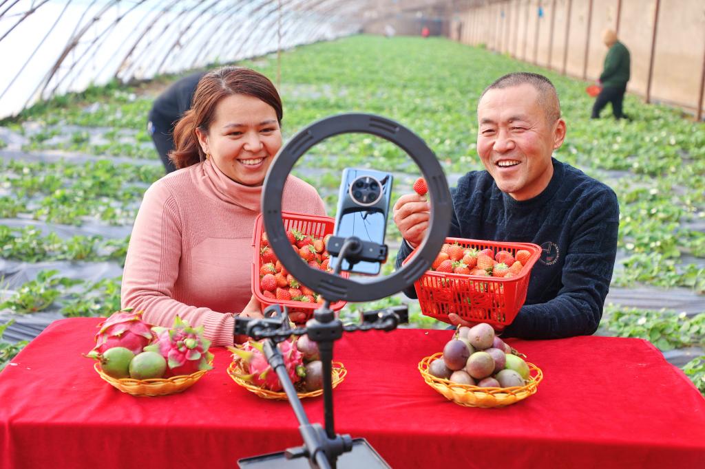 正值草莓上市時節(jié),新疆庫車市開展“科技之冬”大培訓下鄉(xiāng)服務,組織機關年輕干部深入田間地頭,通過開展直播帶貨、對接供貨商等手把手教的助銷培訓方式,助力農(nóng)民增收和鄉(xiāng)村振興。