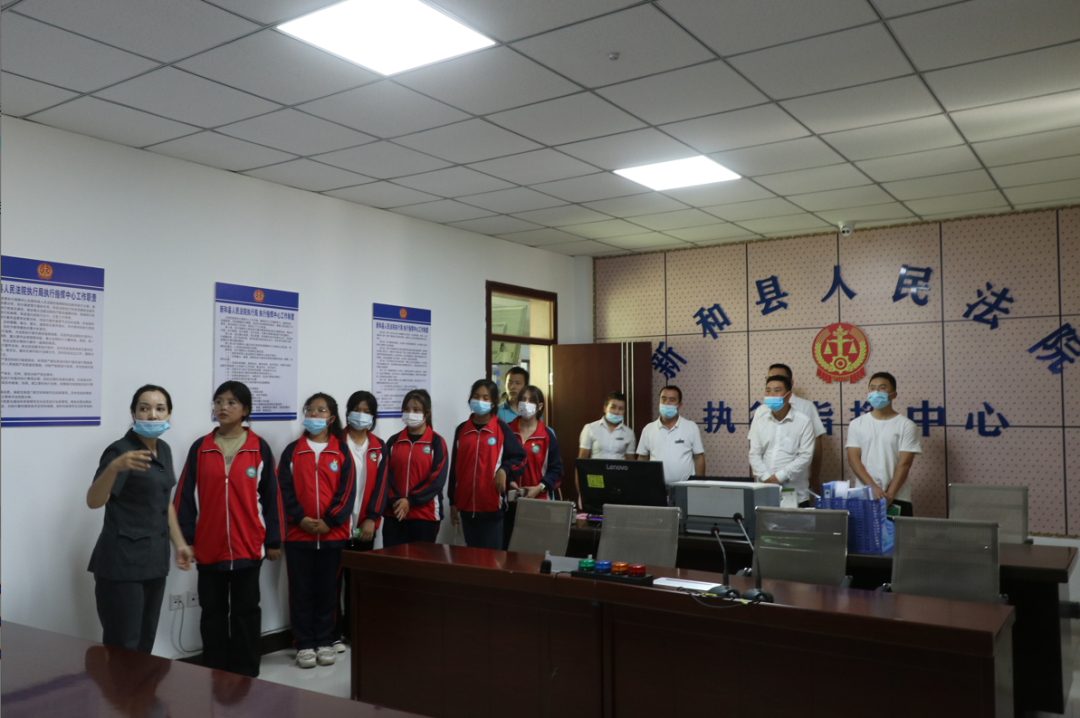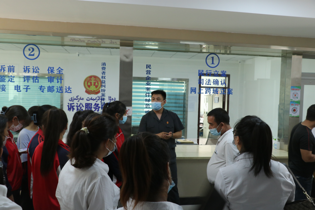 緊接著,工作人員帶領大家一同參觀了新和縣人民法院執行局和立案庭(訴訟服務大廳),參觀過程中,工作人員向大家介紹了立案窗口的功能,講解了民事訴訟、行政訴訟執行的含義,使大家了解了法院的基本職能和日常工作,學生們對法院產生了更高的敬意。