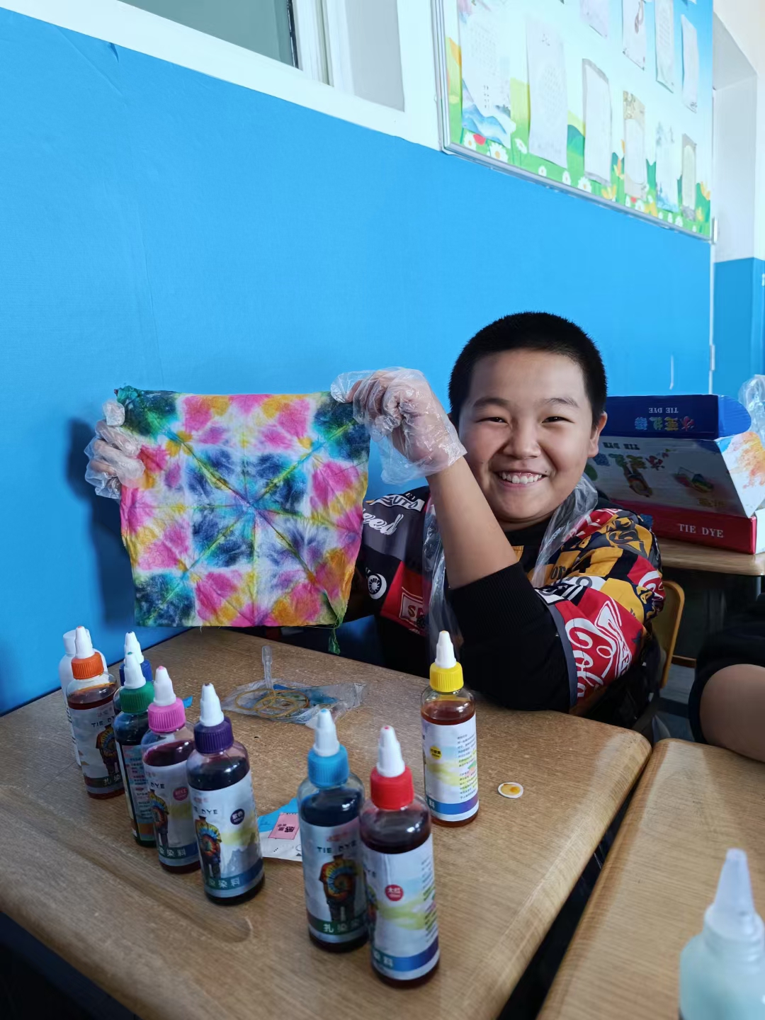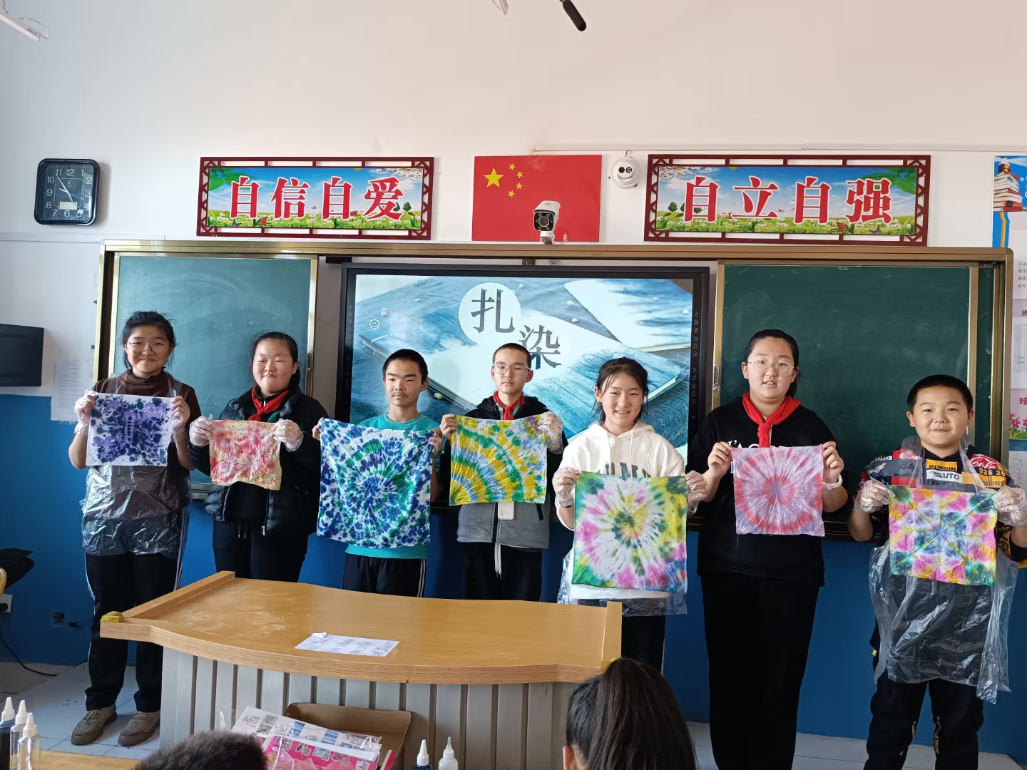 此次活動使學生們學會了如何運用不同顏料調(diào)出好看的顏色,制作獨一無二的扎染作品,激發(fā)了學生們的興趣,培養(yǎng)了他們的創(chuàng)新精神和動手實踐能力,同時,讓他們進一步領略了中華民族深厚的文化底蘊。