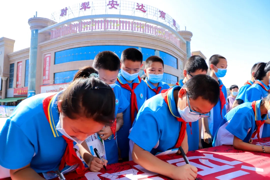 活動現場,尉犁縣公安局黨委委員、副局長、禁毒辦主任侯偉主持并致辭,尉犁縣科技志愿者協會代表發言講話。尉犁縣第一小學22名青少年學生代表宣讀禁毒誓詞,縣委主管領導及全體參與活動人員在禁毒橫幅上簽名承諾并合影。