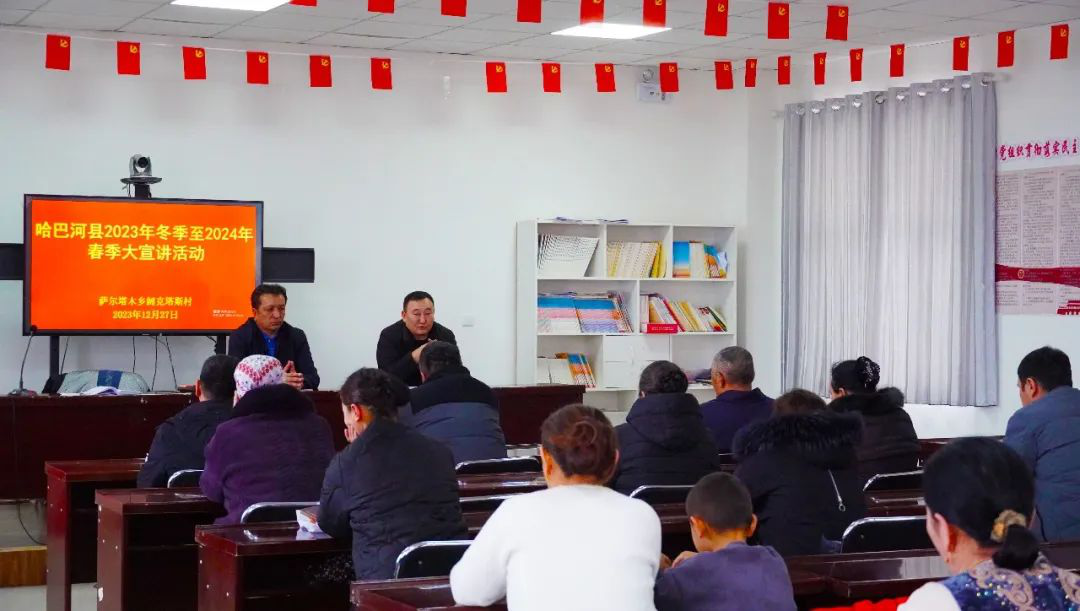 為進一步提升理論宣講質效,推動黨的創新理論深入基層、深入群眾,12月27日,哈巴河縣委宣傳部聯合縣文聯、縣科協,赴薩爾塔木鄉闊克塔斯村開展2023年冬季至2024年春季大宣講活動,30余人參加了此次宣講活動。
