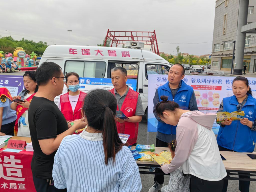 啟動儀式上20多家單位設置了宣傳展位。工作人員通過科普展覽展示科技發展成果,為過往群眾發放宣傳資料,普及科學知識。