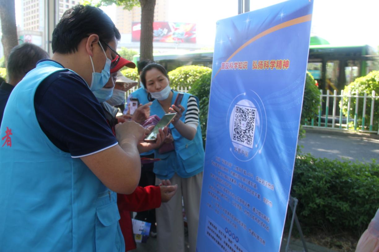 (奎屯市科協在公共場所引導群眾注冊科普中國APP)