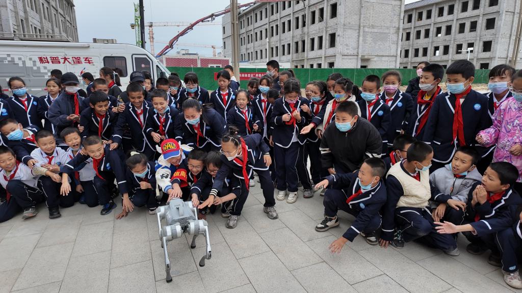 四足機器人成為全場最受歡迎的“明星”,跳躍、打滾、作揖、前滾翻……它靈活地做著高難度動作,還伴隨著激揚的音樂在校園翩翩起舞,引來師生們陣陣歡呼與喝彩,他們與機器狗握手互動,交到了第一個機器人“朋友”,開啟了對科學知識的好奇與探索,歡笑聲、驚呼聲、頓悟聲充滿校園。