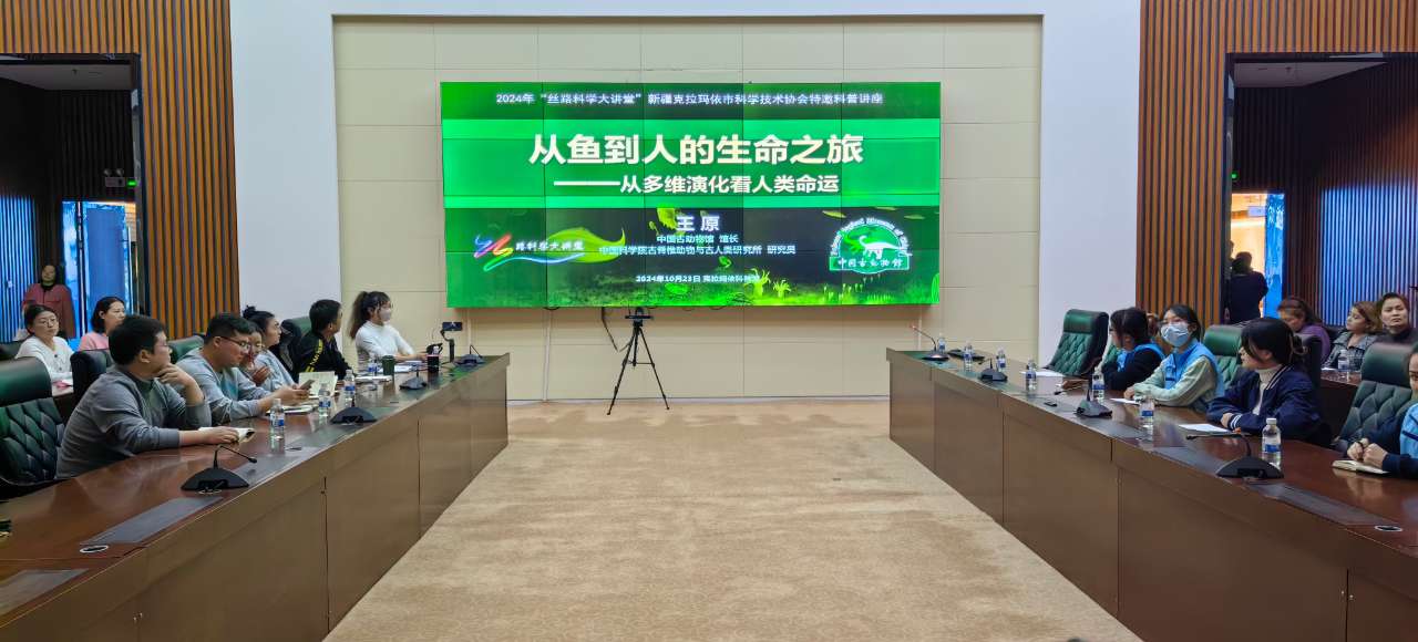 2024年10月22-24日,克拉瑪依市科協邀請中科院古脊椎動物與古人類研究所研究員、中國古動物館館長王原赴克拉瑪依市第二小學、科技館以及獨山子區第三中學,圍繞《從神話龍到中國恐龍》《從魚到人的生命之旅》《聽化石的故事》的主題,講述生命演化歷程中充滿的驚奇、偶然與不可思議。