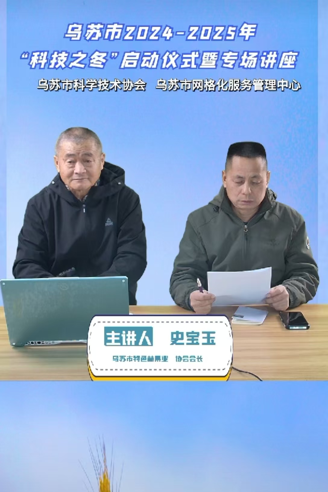 啟動儀式結束后,首場培訓活動正式開始。培訓邀請全國科普帶頭人、烏蘇市特色林果業協會會長,講師團成員,高級農藝師史寶玉,烏蘇市疾控中心彭薇薇,烏蘇市人民醫院公共衛生科主任醫師陳萬里,以抖音直播形式開展果樹病蟲害防治和疫苗接種與傳染病防治等培訓。