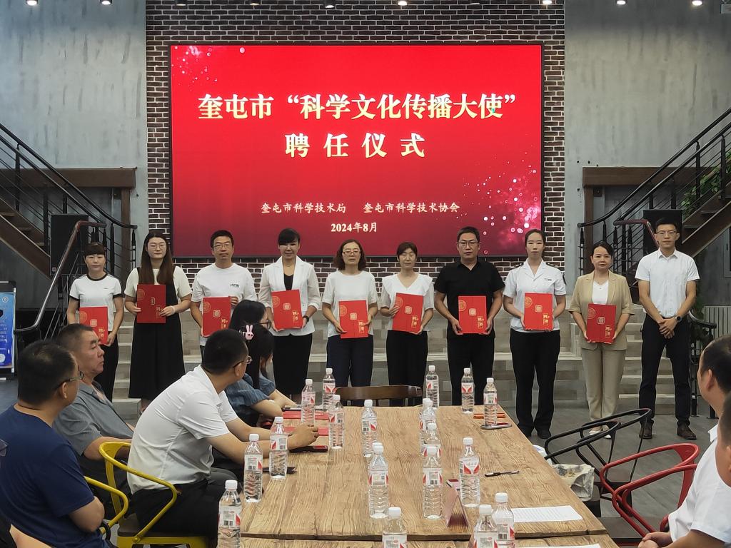 為調(diào)動(dòng)廣大科技工作者更加積極投身我市科普事業(yè),進(jìn)一步壯大科普志愿者隊(duì)伍,8月1日上午,奎屯市科協(xié)、市科技局聯(lián)合舉辦科學(xué)文化傳播大使集中聘任儀式,活動(dòng)現(xiàn)場(chǎng)公布了24位來(lái)自社會(huì)各界的科學(xué)文化傳播大使名單,市科協(xié)、科技局領(lǐng)導(dǎo)分別為24位市科學(xué)文化傳播大使頒發(fā)了聘書(shū)。