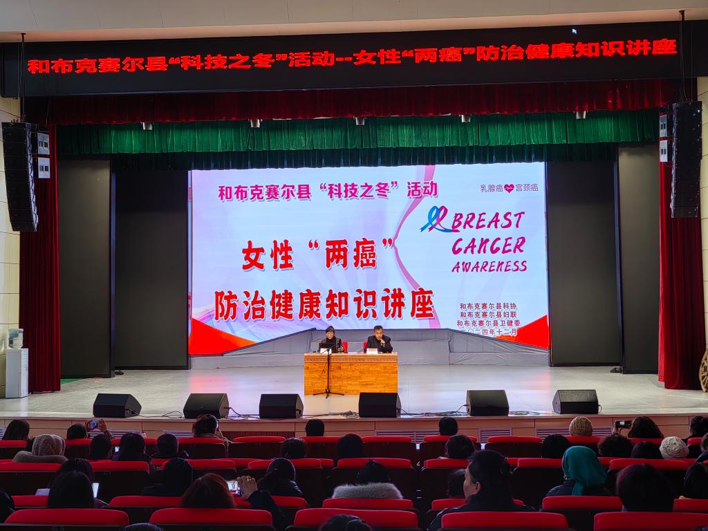 12月26日,和布克賽爾縣科協(xié)聯(lián)合縣婦聯(lián)、衛(wèi)健委在縣影劇院舉辦了2024—2025年“科技之冬”系列活動(dòng)——女性“兩癌”防治健康知識講座,各鄉(xiāng)鎮(zhèn)場、社區(qū)(村隊(duì))及縣直部門近200名女性干部群眾參加了培訓(xùn)。
