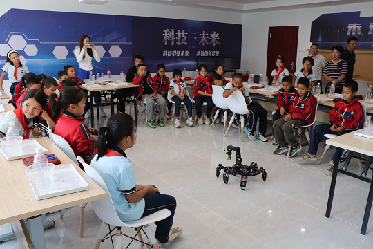 隨后,在巴州青少年科普實驗基地,這里是一個充滿魔法與奇跡的地方。在老師的引導下同學們們做了各種有趣的科學實驗,并近距離觀看了古德微六足機器人的表演。