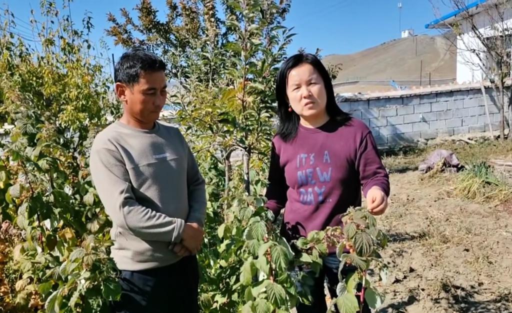 “烏蘭,你庭院中的樹莓要好好管理,你種植的是高產、抗病、抗倒伏的‘哈瑞太茲’樹莓品種,到本月15號,你把樹莓修剪高度定到1.2米,然后綁起來壓倒埋土。這樣,明年的樹莓發芽開花早,產量也高……”10月5日在庫爾特鄉達拉阿吾孜村烏蘭家庭院,田曉琴邊講解邊演示著。