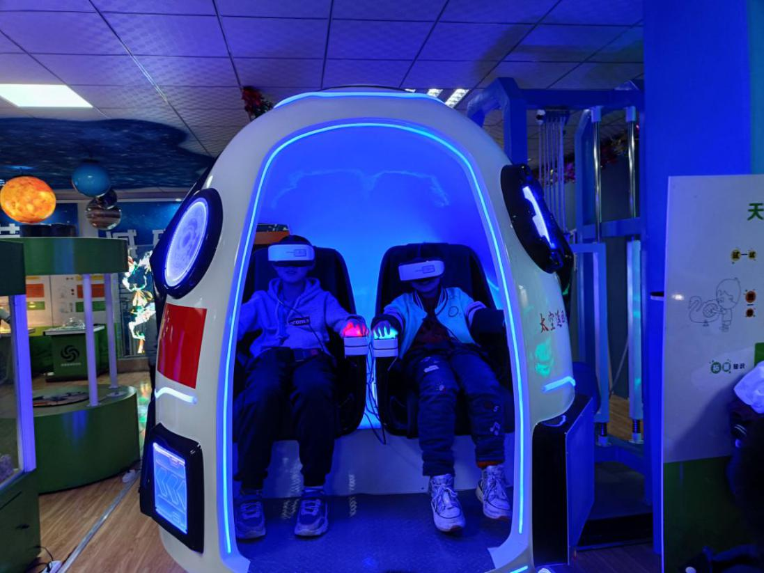 活動現場,通過科技館講解員的耐心講解,同學們掌握了各類展具的科學原理及操作方法,深入了解現代科技的基本概念。隨后,同學們觀看機器狗表演,參觀消防安全展示廳,并體驗煙圈空氣炮等科技展具,通過佩戴VR眼鏡、乘坐元始返回艙和5人飛碟,體驗逼真的環境特效和立體的聲畫效果。此次身臨其境的科普知識體驗,幫助同學們更好地理解了科學知識和自然現象。