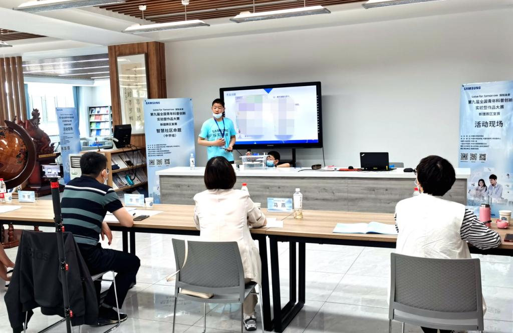 第九屆全國青年科普創(chuàng)新實(shí)驗(yàn)暨作品大賽(新疆賽區(qū))復(fù)賽創(chuàng)意作品項(xiàng)目智慧社區(qū)主題比賽現(xiàn)場。